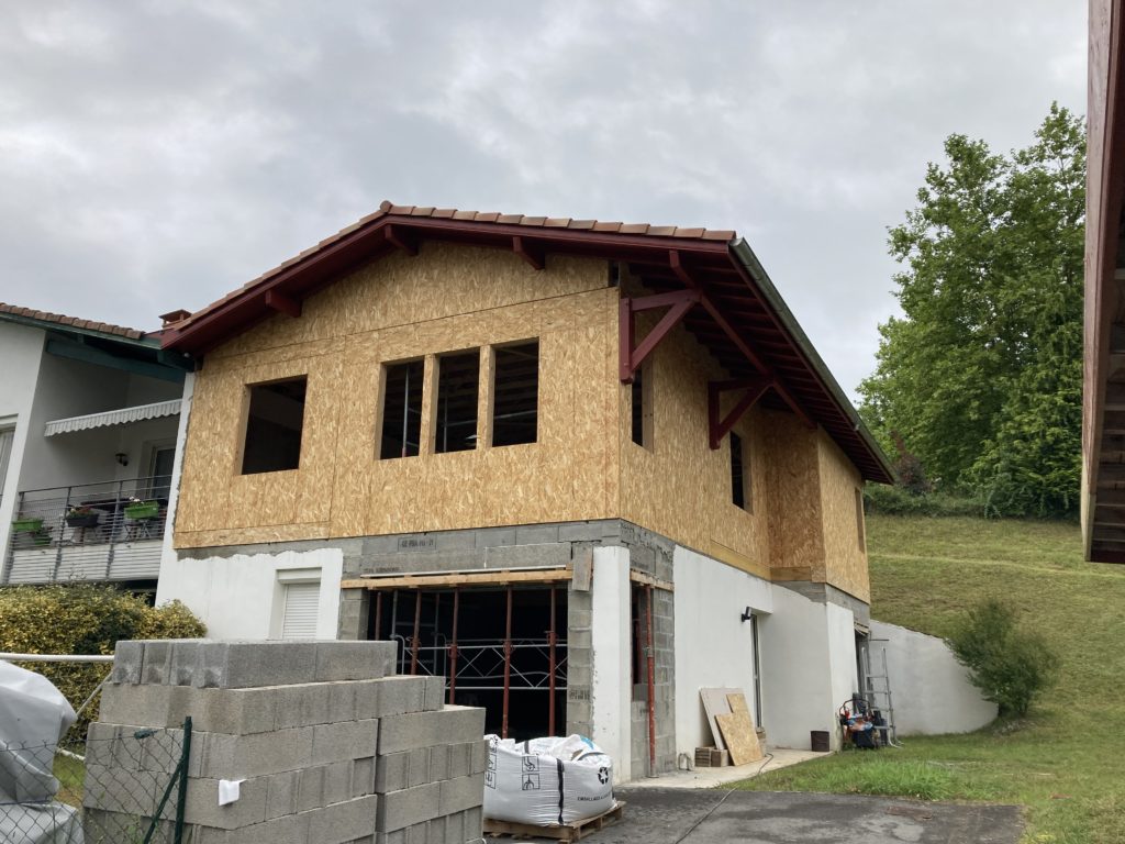 ITE sur ossature bois d’une surélévation de maison à Ayherre